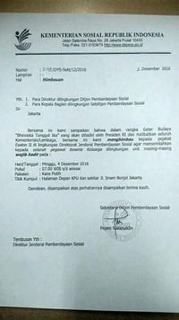 Surat yang asli dari Kemensos berisi imbauan kepada para pejabat Eselon II di lingkungan Kemensos untuk hadir dalam rangka menyosialisasikan nilai-nilai kesetiakawanan sosial dan restorasi sosial. Adapun lokasi acara memang berada di area Car Free Day (CFD), Minggu (4/12/2016) mulai pukul 07.00 WIB dengan titik kumpul di depan Gedung KPU dan sekitar Jl Imam Bonjol, Jakarta Pusat.